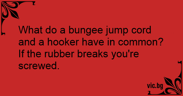 - Какво е общото между проститутка и бънджи скок? - И двете са евтини, бързи и ако гумата се скъса си мъртъв...