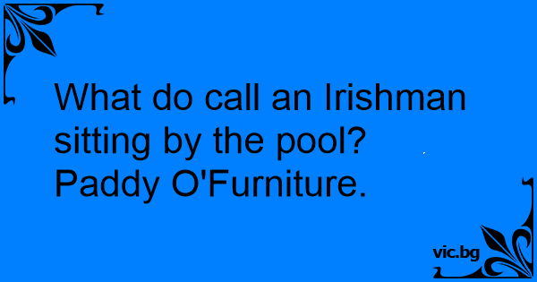 What do call an Irishman sitting by the pool? Раddy O'Furniture.