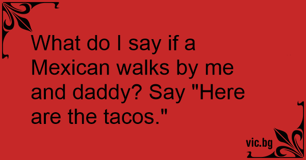 What do I say if a Mexican walks by me and daddy? Say "Here are the tacos."