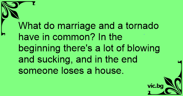 What do marriage and a tornado have in common? In the beginning there's a lot of blowing and suскing, and in the end someone loses a house.