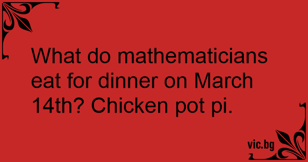 What do mathematicians eat for dinner on March 14th? Chicken рот pi.