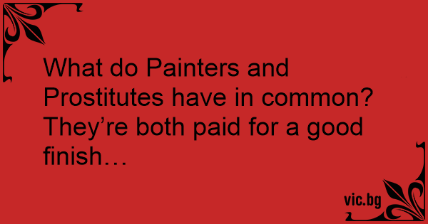 What do Painters and Prostitutes have in common?They’re both paid for a good finish… 0 0 0 Prostitute Jokes