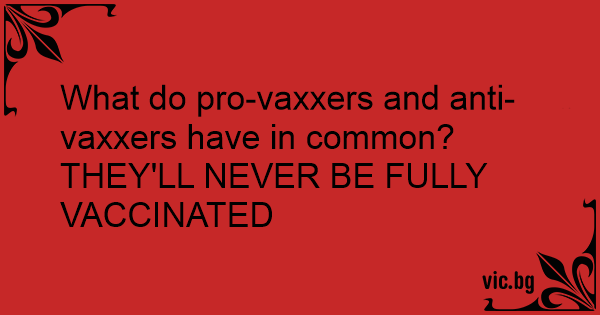 По какво си приличат ваксарите и анти-ваксърите? Никога няма да бъдат напълно ваксинирани What do pro-vaxxers and anti-vaxxers have in common?THEY'LL NEVER BE FULLY VACCINATED 1 0 0