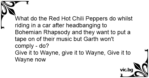 What do the Red Hot Chili Peppers do whilst riding in a car after headbanging to Bohemian Rhapsody and they want to put a tape on of their music but Garth won't comply - do?