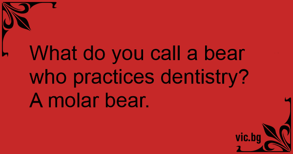 What do you call a bear who practices dentistry? A molar bear.