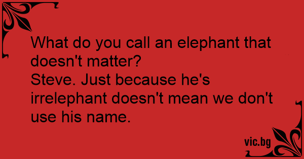 Steve. Just because he's irrelephant doesn't mean we don't use his name.