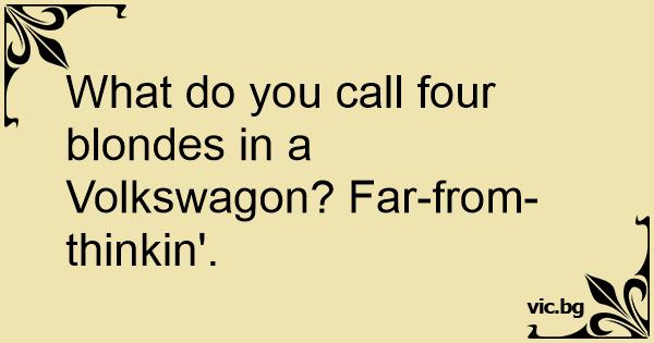 What do you call four blondes in a Volkswagon? Far-from-thinkin'.