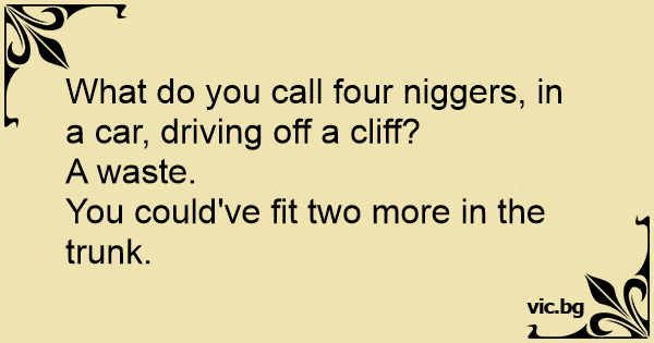 What do you call four niggеrs, in a car, driving off a cliff?