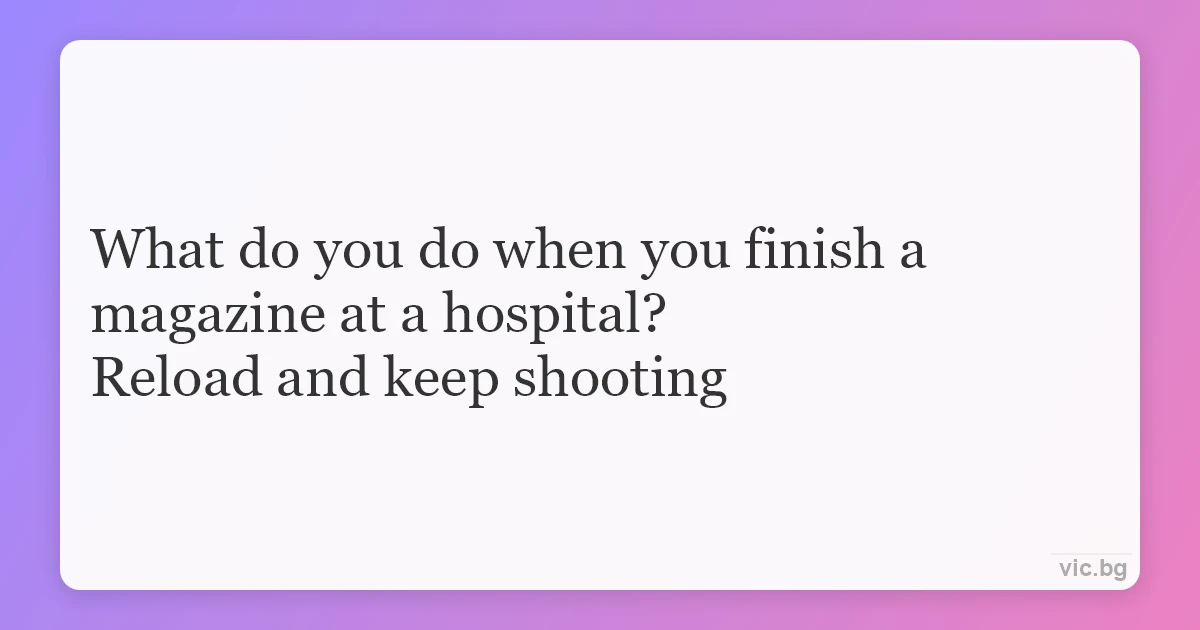 What do you do when you finish a magazine at a hospital?<br />Reload and keep shooting