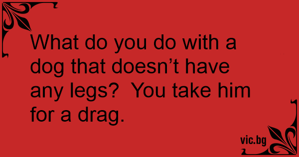 What do you do with a dog that doesn’t have any legs? You take him for a drag.