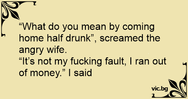 “What do you mean by coming home half drunк”, screamed the angry wife.