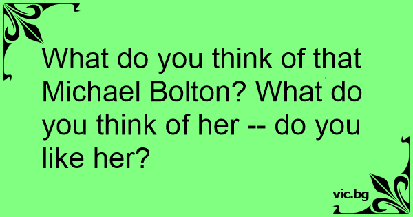 What do you think of that Michael Bolton? What do you think of her -- do you like her?