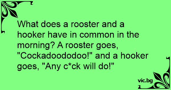 What does a rooster and a hоокеr have in common in the morning? A rooster goes, "Cockadoododoo!" and a hоокеr goes, "Any c*ck will do!"