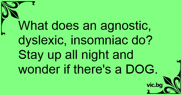 What does an agnostic, dyslexic, insomniac do?