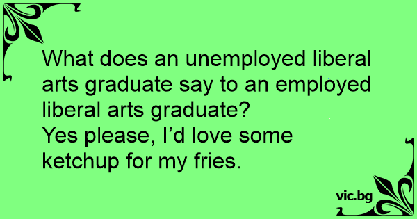What does an unemployed liberal arts graduate say to an employed liberal arts graduate?