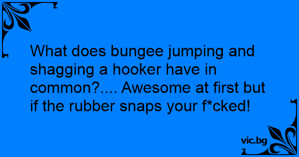- Какво е общото между проститутка и бънджи скок? - И двете са евтини, бързи и ако гумата се скъса си мъртъв...