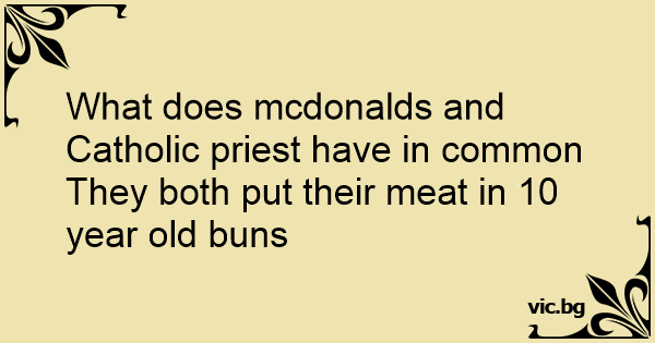 What does mcdonalds and Catholic priest have in common<br />They both put their meat in 10 year old buns