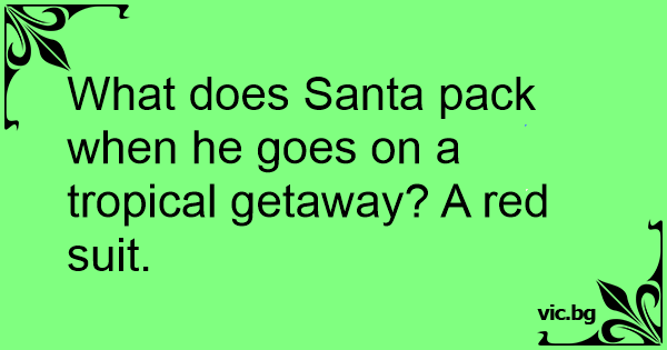 What does Santa pack when he goes on a tropical getaway? A red suit.
