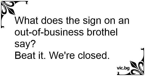 What does the sign on an out-of-business brothel say?