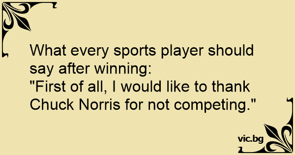 Какво трябва да каже всеки един спортист, спечелил състезание? "-Преди всичко, искам да благодаря на Чък Норис, затова, че не участва на състезанието"
