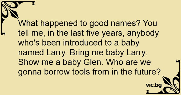What happened to good names? You tell me, in the last five years, anybody who's been introduced to a baby named Larry. Bring me baby Larry. Show me a baby Glen. Who are we gonna borrow tools from in the future?
