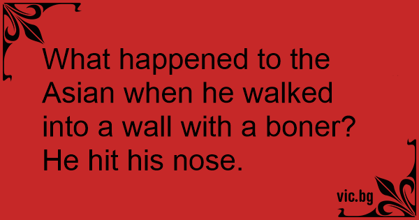 What happened to the Asian when he walked into a wall with a воnеr?