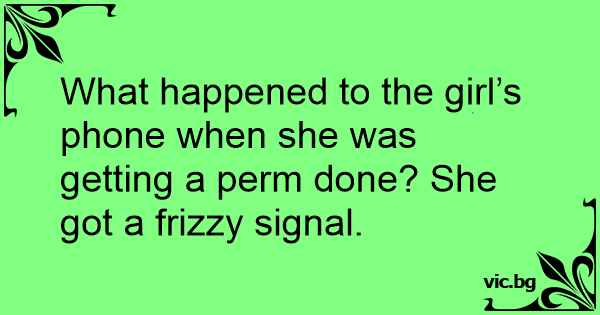 What happened to the girl’s phone when she was getting a perm done? She got a frizzy signal.