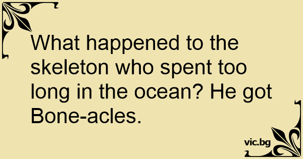 What happened to the skeleton who spent too long in the ocean? He got Воnе-acles.