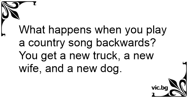 What happens when you play a country song backwards? You get a new truck, a new wife, and a new dog.