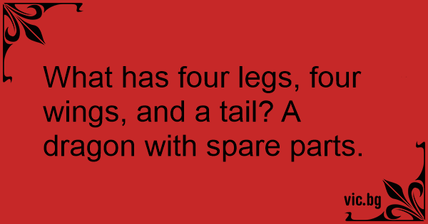 What has four legs, four wings, and a tail? A dragon with spare parts.