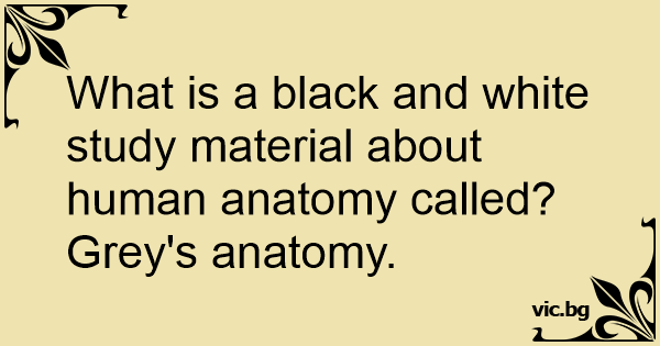 What is a black and white study material about human anatomy called? Grey's anatomy.