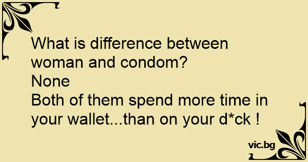 – Vad är det för likhet mellan kvinnor och kondomer? – Båda spenderar mer tid i din plånbok än på din lem.