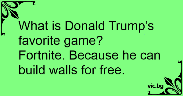 What is Donald Trump’s favorite game?<br />Fortnite. Because he can build walls for free.