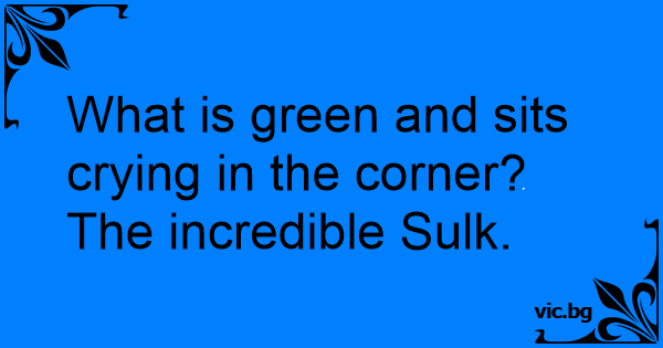 What is green and sits crying in the corner?