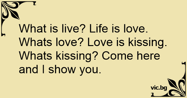 What is live? Life is love. Whats love? Love is kissing. Whats kissing? Come here and I show you.