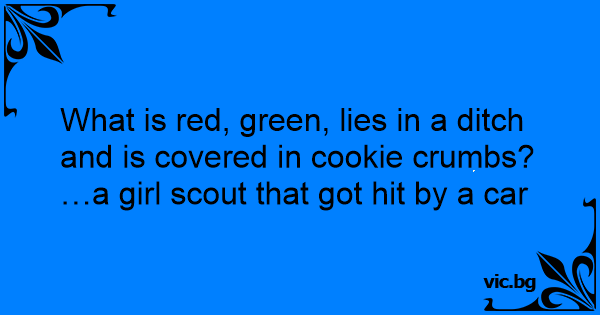 What is red, green, lies in a ditch and is covered in cookie crumbs?