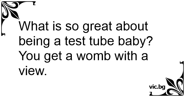 What is so great about being a test tube baby? You get a wомв with a view.