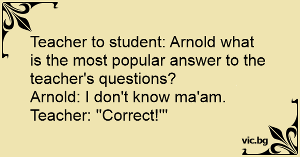 Teacher to student: Arnold what is the most popular answer to the teacher's questions?