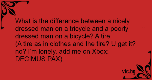 What is the difference between a nicely dressed man on a tricycle and a poorly dressed man on a bicycle? A tire