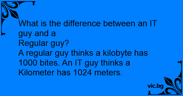 A regular guy thinks a kilobyte has 1000 bites. An IT guy thinks a