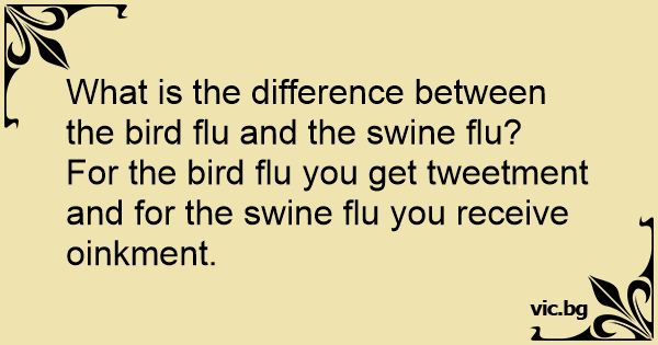 For the bird flu you get tweetment and for the swinе flu you receive oinkment.