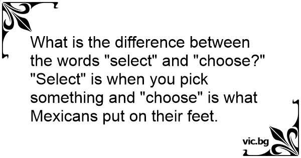 "Select" is when you pick something and "choose" is what Mexicans put on their feet.