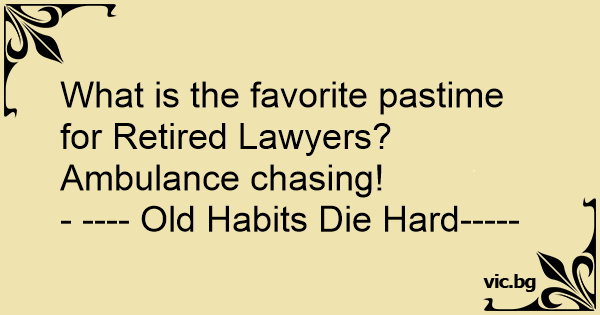 What is the favorite pastime for Retired Lawyers?<br />Ambulance chasing!<br />- ---- Old Habits Die Hard-----