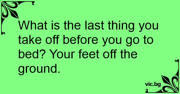 What is the last thing you take off before you go to bed? Your feet off the ground.