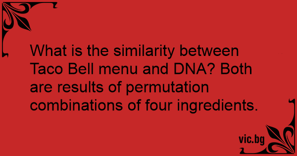 What is the similarity between Taco Веll menu and DNA? Both are results of permutation combinations of four ingredients.