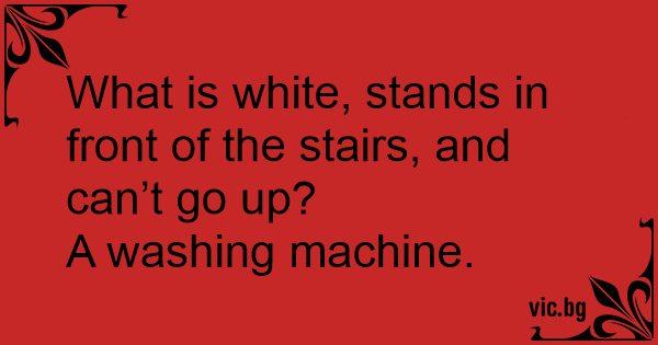 What is white, stands in front of the stairs, and can’t go up?