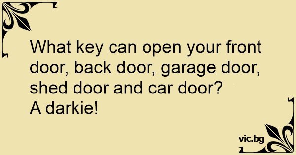 What key can open your front door, back door, garage door, shed door and car door?