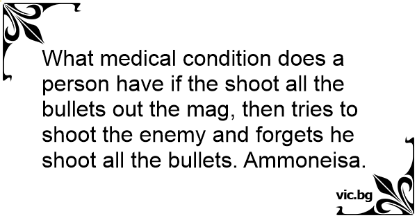 What medical condition does a person have if the shoot all the bullets out the mag, then tries to shoot the enemy and forgets he shoot all the bullets. Ammoneisa.