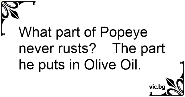 What part of Popeye never rusts? The part he puts in Olive Oil.