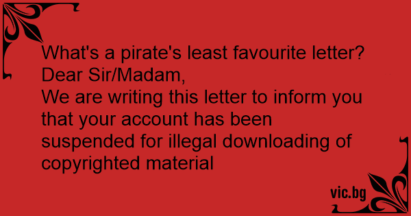 We are writing this letter to inform you that your account has been suspended for illegal downloading of copyrighted material
